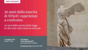 Il 15 maggio 2026, dalle ore 09:00 alle ore 13:30 in Aula Magna Mangiagalli, in occasione dei 30 anni dalla nascita di SVSeD (Soccorso Violenza Sessuale e Domestica), si terrà il convegno, dal titolo "30 anni dalla nascita di SVSeD, 30 anni dalla nascita della legge 66 del 1996 sulla violenza sessuale: esperienze a confronto"